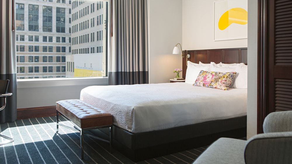 Staypineapple, An Iconic Hotel, The Loop is a vibrant blend of historic architecture and playful, modern hospitality set within a landmark Chicago building. Stepping into the lobby, guests are greeted by the grandeur of marble flooring and soaring vaulted ceilings, a nod to the city’s rich design heritage. The experience is uniquely “Staypineapple,” featuring quirky touches like welcome drinks upon arrival and complimentary bicycle rentals for pedaling through the nearby Millennium Park or along the Chicago Riverwalk. The rooms prioritize ultimate relaxation with the brand’s signature “Naked Experience,” which includes exceptionally soft pillowtop beds and premium linens. Located in the heart of the Loop, just minutes from the Art Institute and Michigan Avenue, this dog-friendly hotel offers a soulful and spirited home base for travelers who appreciate both old-world charm and contemporary flair.